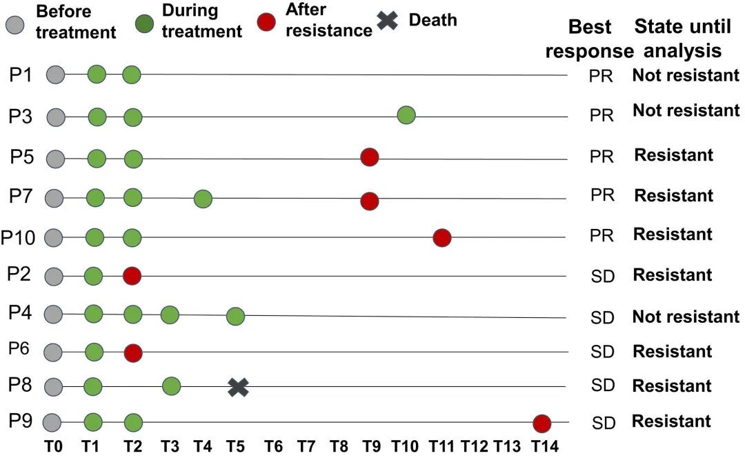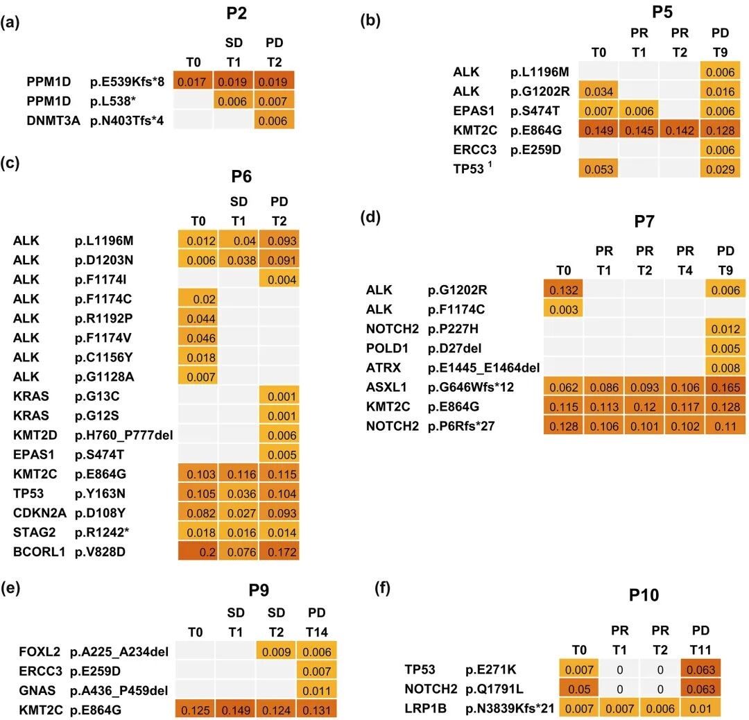 P10 患者:TP53 突变 (E271K) 频率从基线 0.7% 升至 6.3%。
